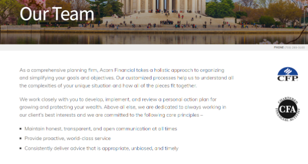 Those interested in working with Acorn Financial Advisory Services can go online to the firm's website and submit a contact form. You can also visit the firm in person at one of its offices or call them on the phone at (703) 870-2412.